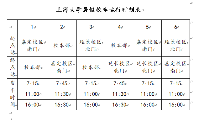 根据上级关于公务车改革的相关要求,为了规范学校校车的运行以及保障多校区办学的需求,学校决定对原有的班车运行模式进行调整,取消校外班车点,自2018年秋季学期开始(2018年8月31日)实施新的校车运行方案。现将最新校车运行时刻表通知如下(以下为暂行时刻表安排,根据开学后实际运行情况,车辆安排会进行微调,敬请关注校园官网最新通知):