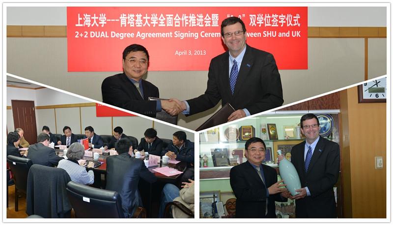叶校长、吴校长对美国肯塔基大学代表团的到来表示热烈欢迎,表示将继续支持两校的师生合作交流等项目,双方校领导参加了《两校全面合作推进会暨 “2+2”双学位签字仪式》,并就2+2双学位项目、科研合作、行政人员之间的交流项目、国际汉语教育硕士—联合培养项目等问题进行了深入的讨论。达成了多项共识。