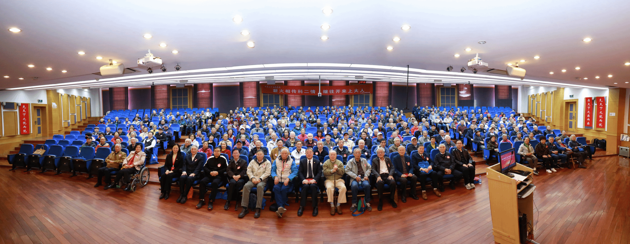 随后,校友代表依次发言。1966届校友郁世荣作为活动筹备组代表,向大家介绍了本次返校活动的巧妙缘起和筹备历程;1968届校友刘锦高带领大家回顾了“科二”的辉煌历史和卓越贡献;沈光远老师作为教师代表表达了师生团聚的喜悦和祝福;忻福良校长传递了对“科二”校友及今日上大的期待与鼓励。纸短情长、言不尽情,欢聚的氛围在掌声和歌声中掀起一次次高潮。