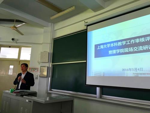 在本次交流会上,王光东首先介绍了本次审核评估院系推进暨理学院现场交流研讨会的宗旨和意义。理学院党委书记盛万成代表学院领导班子根据教育部审核评估的要素,从学院的办学定位、指导思想、专业培养目标确定的依据、人才培养和专业建设的规划、特色及亮点工作、教学质量保障体系的建设及问题和对策等十个方面汇报了理学院本科教学审核评估工作。盛万成在汇报近几年取得的成绩基础上,重点强调了存在基础学科投入不足、部分实验室和办公条件差、青年教师教学工作量过大、部分专业生源不佳等问题,为院系审核评估工作推进提出了下一步工作的方向和目标。