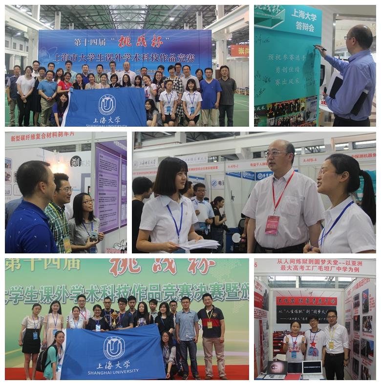 6月13、14日,第十四届“挑战杯”上海市大学生课外学术科技作品竞赛终审决赛和颁奖典礼在上海理工大学举行,我校继第十三届后再次以高校团体高分力捧“优胜杯”,分别荣获1个特等奖、2个一等奖、3个二等奖、5个三等奖。“挑战杯”竞赛是由共青团中央、中国科协、教育部、全国学联和地方政府共同主办的一项具有导向性、示范性和群众性的全国竞赛活动,被誉为当代大学生科技创新的“奥林匹克”盛会。上海市挑战杯大学生课外学术科技作品竞赛同时是全国挑战杯的市级选拔赛,本届市级竞赛收到来自全市37所普通高校、高职高专、民办高校和军事院校等共341项作品,各位评委按专业类别进行分组,根据前期网络评审的结果进行合议。经过评委审议,来自31所高校的108件作品入围决赛,来自33所高校的100件作品拟授三等奖。