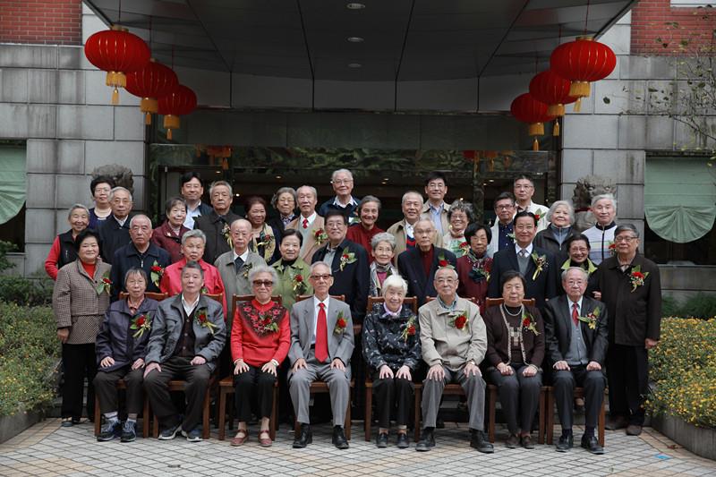 最后,金婚伉俪们脸上洋溢着幸福的笑容与校领导一道,拍金婚纪念集体照。对因身体等原因未能参加庆典的15对金婚伉俪,离退休处将专门登门庆贺,送上学校的关怀和深深的祝福。