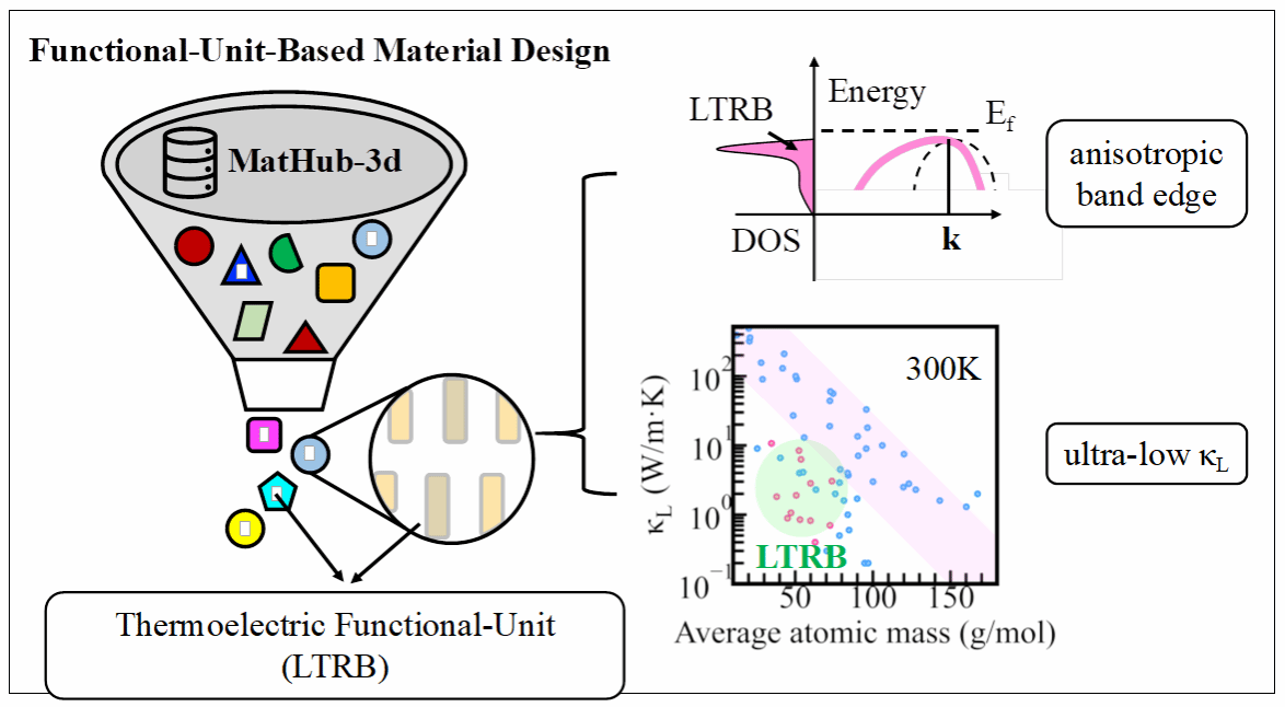 基于功能基元的材料设计是利用与所需特性相关的部分优势结构(即本文中的“功能基元”)来识别目标化合物的方法,可以达到根据需求去主动设计和筛选新材料的目的。此方法发现新材料的过程是首先识别有用的功能基元,然后在包含这些基元的化合物空间内搜索高性能材料。研究人员以设计高性能热电材料为案例,具体阐述了功能基元在材料设计中的效用。在识别优势功能基元的过程中,研究人员发现线性三原子共振键(LTRB)在结构和电子上都提供了强的各向异性,以及具有强的非谐声子散射。因此,LTRB作为一个热电功能基元被引入。随后,研究人员从黑人巨大精品欧美_黑人巨大精品欧美黑寡妇_黑人巨大精品欧美一区二区_黑人巨大精品欧美一区二区免费_黑人巨大跨种族video_黑人巨大无码中文字幕无码_黑人巨茎大战俄罗斯美女_黑人巨茎大战俄罗斯美女材料基因组工程研究院自研的MatHub-3d (杨炯教授团队开发的具有热电特色的材料数据库平台并免费开放,http://www.mathub3d.net/)中识别出17个含有LTRB基元的半导体高性能热电候选化合物。详细的输运计算表明,含LTRB的化合物的晶格热导率不仅远低于其他具有相似平均原子质量的化合物,而且LTRB由于贡献价带附近的能态密度使得候选物价带边表现出显著的能带各向异性。此外,研究人员以具有最低晶格热导率的候选化合物K5CuSb2(300 K时为0.39 W/m·K)为例具体分析了基元[Sb-Cu-Sb]5-的共振电子结构,建立了LTRB基元与热电性能之间的关联性(热电优值ZT在800 K时为1.3)。本工作展现了具有LTRB基元的化合物表现出优异的热电性能,表明了基于功能基元的材料设计策略在发现新材料上的前景,同时也为其他功能材料的开发提供了新思路。