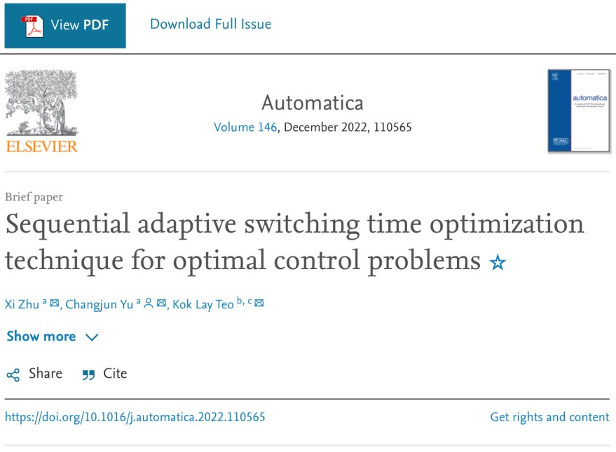 该项成果以研究最优控制问题的切换时间优化为核心,所做的突破性工作在于克服了当前流行的控制参数化方法结合时域转换技术在求解问题时所存在的缺陷——即要求所有的控制函数必须具有相同的切换次数并同时切换,首次实现了控制切换时间从部分自适应优化向完全自适应优化的重大进展,解决了长期遗留下来的技术难点。