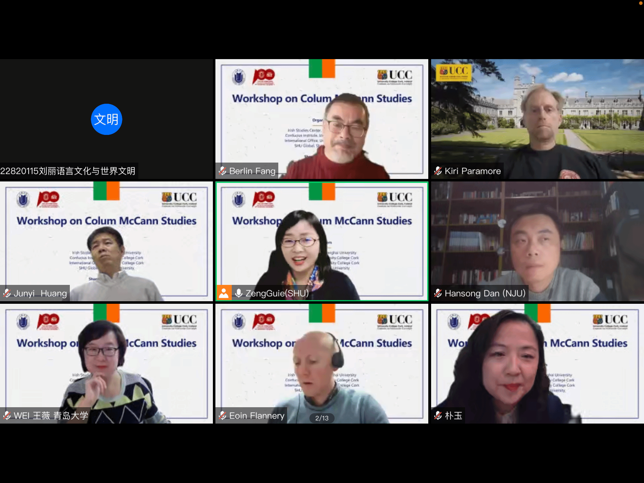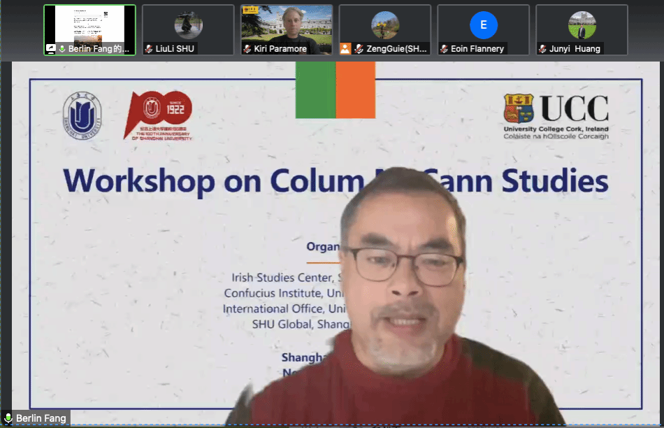 科克大学白贵理教授主持主旨发言。首先,弗兰纳里教授以爱尔兰裔当代作家科伦·麦凯恩(Colum McCann)的两部小说作品《舞者》和《转吧,这伟大的世界》为例,分析了小说中身体与表演景观对于彰显作家“救赎美学”的重要作用和意义,他的文本细读与精到分析为麦凯恩研究提供了新思路。