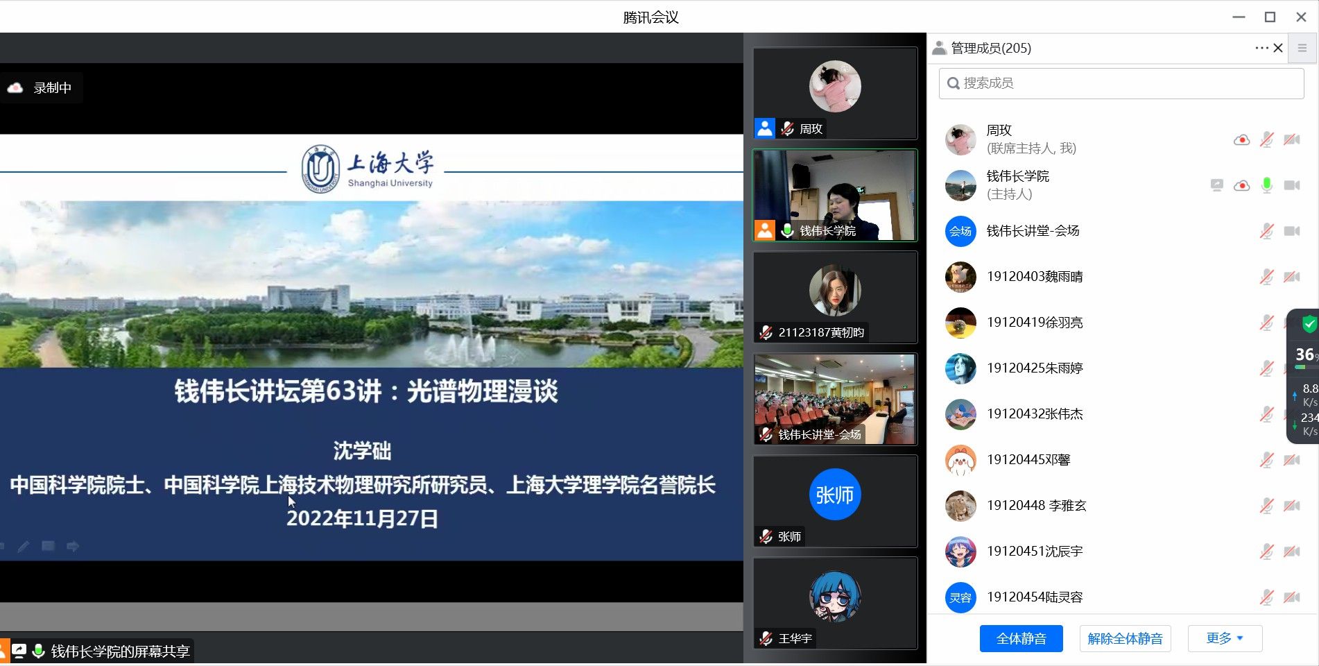 钱伟长讲坛第63讲《光谱物理漫谈》暨2022-2023学年冬季学期首日教育顺利举行