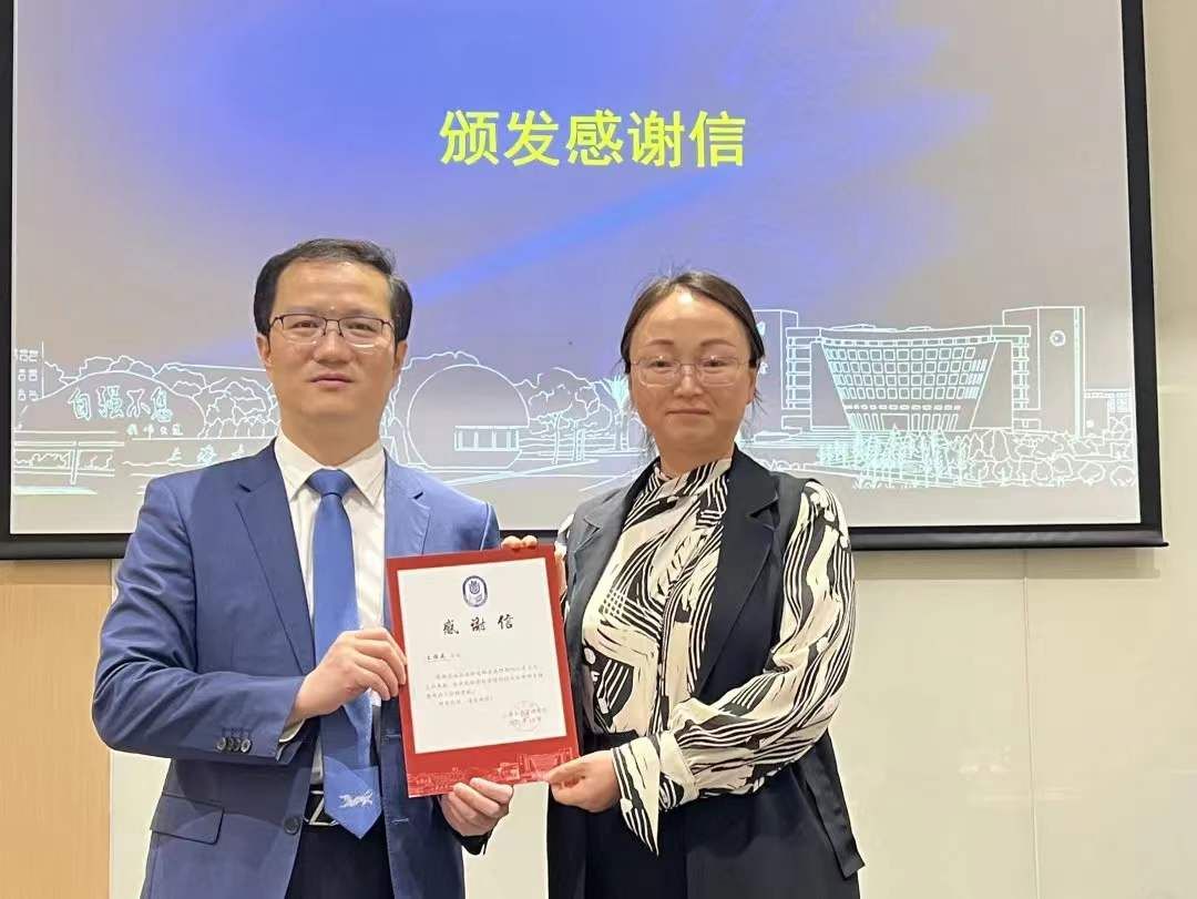 随后,镇璐院长给每位参与抗疫捐赠的校友颁发感谢信,并逐一合影留念。