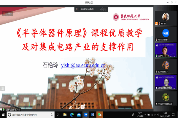 石艳玲教授做了“《半导体器件原理》课程优质教学及对集成电路产业的支撑作用》”的报告,详细讲解了从课程教学到学科竞赛的各种教学安排以及该课程和先修课程以及实际应用的关系。