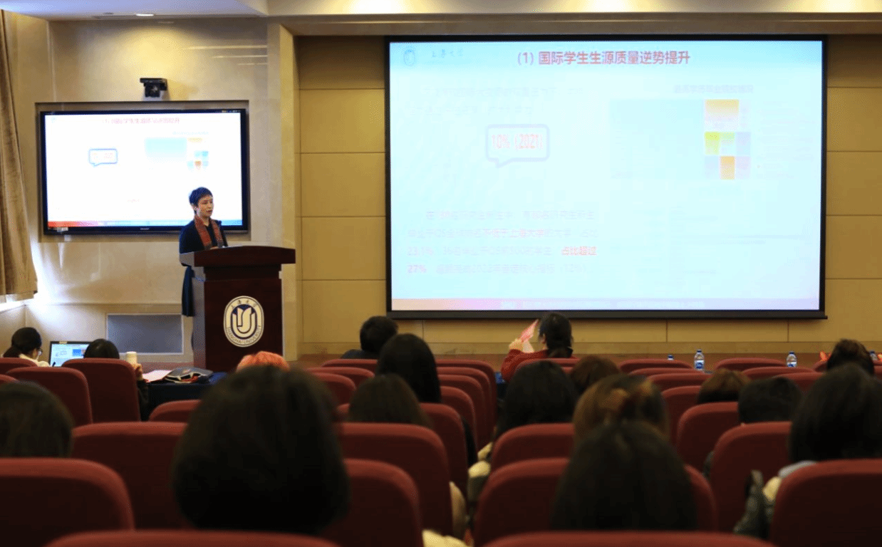 国际部副部长、国际教育学院院长李颖洁围绕国教学院在新时期的愿景、使命与人才培养目标,从国际学生的招生管理服务、国际教育学院的教学科研及学科建设等等方面,回顾学院2022年的收获,擘画了2023年国际教育学院工作新蓝图。她提出2023年要继续贯彻学校教育对外开放大会精神,推进学院“十四五“各项行动计划落地实施,培养适应文化多样性,具有全球视野和优秀中华文化传播力的国际人才。