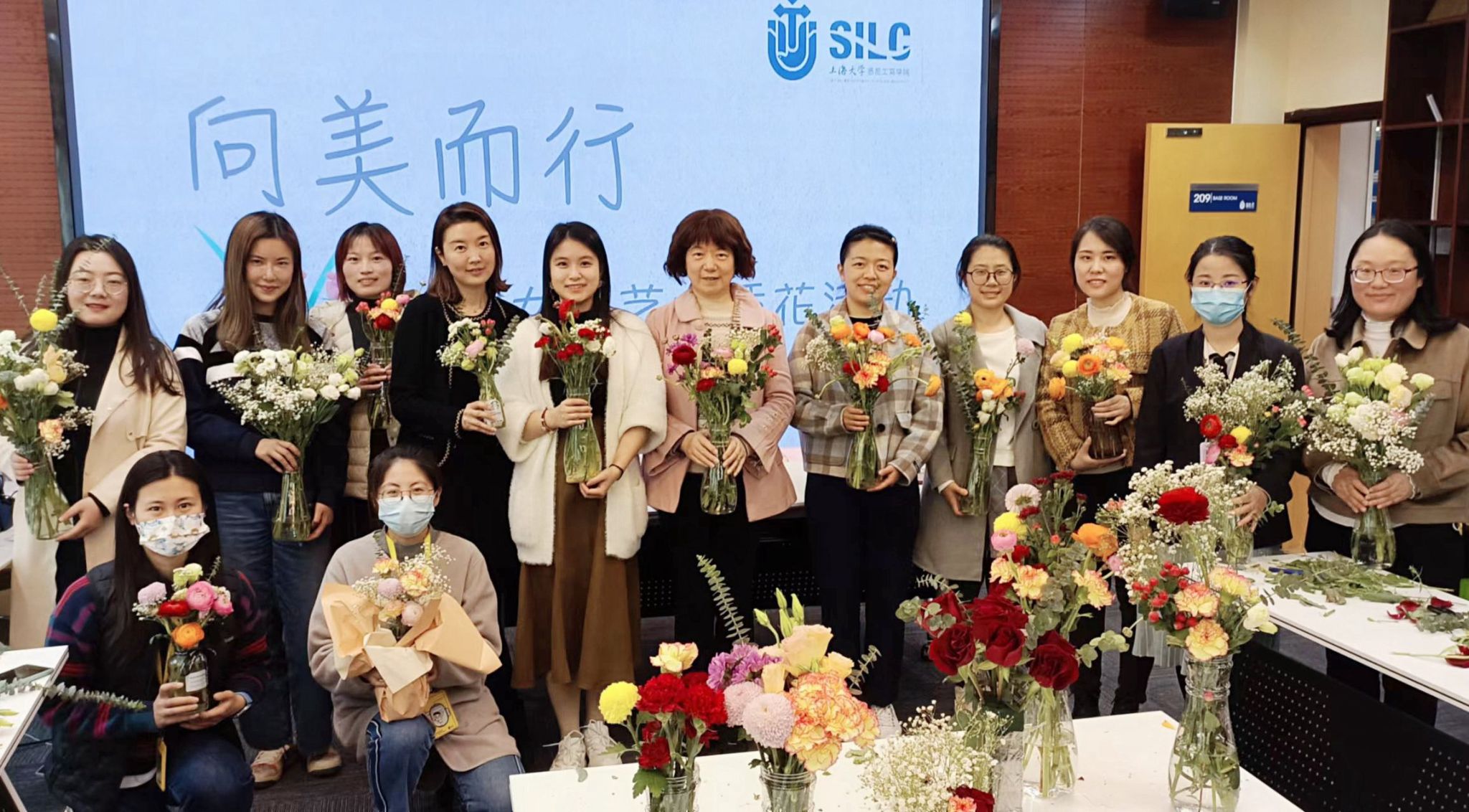 “向美而行”艺术插花于3月8日中午在嘉定校区文德楼二楼国际会议中心举行,吸引了学院女性教职工热情参与。学院党委副书记、副院长卫静芬以及妇委主任曾晓琳为广大女性同志们送上节日的祝福。卫副书记讲到,女性同胞们在学院快速发展的历史进程中贡献了不可磨灭的力量,大家充分发挥聪明才智、展现巾帼风采,在教书、育人、科研等各项工作中艰苦拼搏、全情投入,都能在工作岗位上撑起半边天,而在家庭生活中多为主心骨,无私奉献、无怨无悔,平凡中彰显着不平凡的伟大,衷心祝福大家身体健康,节日快乐!活动现场花团锦簇、花香四溢,一束束颇具设计理念的艺术插花诞生了!活动最终评选出六束最有艺术气质的插花作品,得到大家一致好评。
