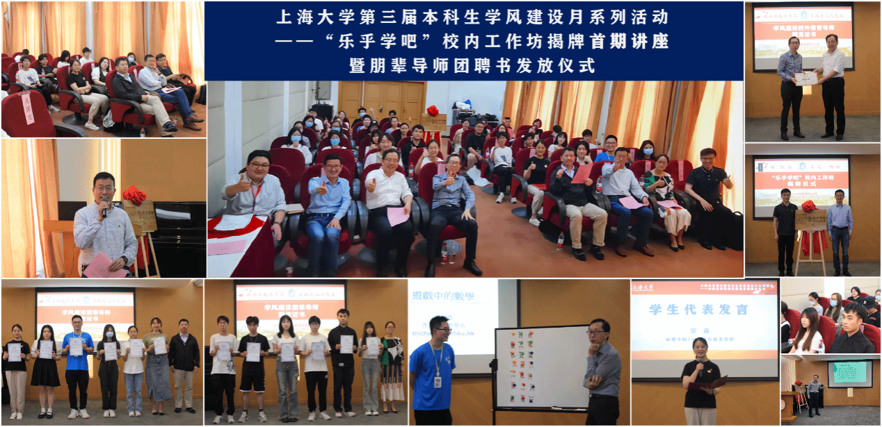 良好的学风建设离不开校内外优秀教师的支持和共同努力,为拓宽学生发展视野,推进学涯规划指导,充分发挥优秀师资引领作用,本科生学业发展指导中心将依托“乐乎学吧”工作坊,整合校内外优秀师资开展内容丰富的“大师讲坛”。为此在校内工作坊首期讲座开始前,理学院党委书记、尚理书院院长盛万成老师为香港大学吴国宝教授颁发了学风建设校外荣誉导师证书。随后在理学院教授王卿文的主持下,首期讲座开始。主讲人吴国宝是香港大学讲座教授,美国工业与应用数学学会院士,冯康科学计算奖得主,现任香港大学-TCL人工智能联合研究中心主席,香港大学大数据研究集群主任。吴国宝先介绍了游戏中的一些趣味数学问题,进而揭示背后的数学原理以及在其他交叉学科中的应用。吴教授的报告内容引起了参会师生的浓烈兴趣,现场学生向吴教授积极提问,并得到了吴教授的耐心解答,令参与的师生收获颇丰。