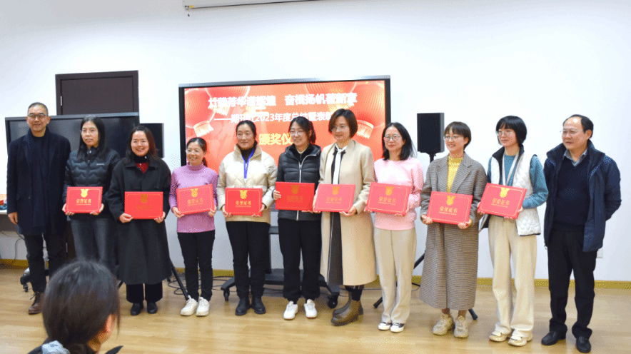 紧接着,会议表彰了2023年期刊社年度考核校优秀、社优秀人员。综合办公室朱静文老师和《社会》编辑部主任田青老师在获奖感言中表示,拿着沉甸甸的奖状十分激动,将继续做好岗位工作,共促期刊社新发展。