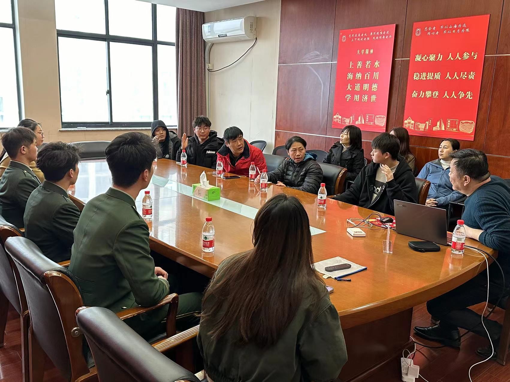 座谈会上,赵俊老师首先从参军育人的角度讲述征兵工作的重要性,强调参军是将青春奉献给国家。同时,同学们也能在军营中磨练个人意志,追寻初心使命,把握青春中那真正鲜红的率性。