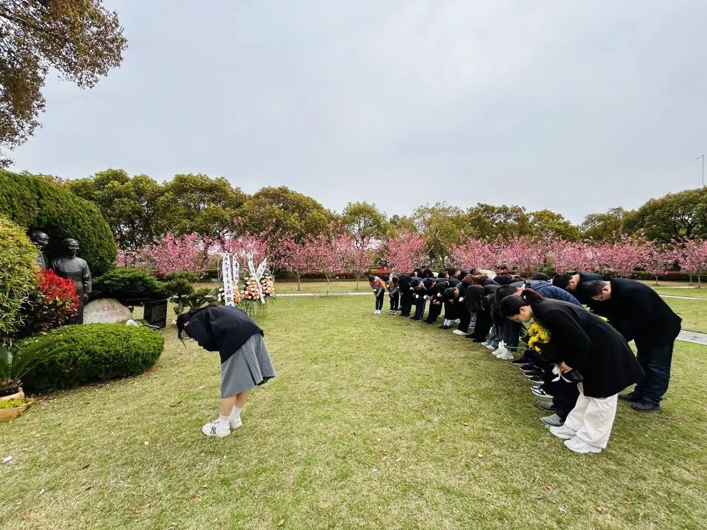 在钱伟长老校长夫妇的墓碑前,钱伟长学院、材料基因院等各单位的老师同学们依次鞠躬致敬并敬献鲜花,以表达对钱伟长老校长深切的敬仰与怀念。仪式最后,钱伟长学院2020级学生代表闫雪涛、杨钰嫣同学给复旦大学和中国科学技术大学的老校长谷超豪老先生献花,表达了上大师生对老一辈教育家、科学家的敬意。