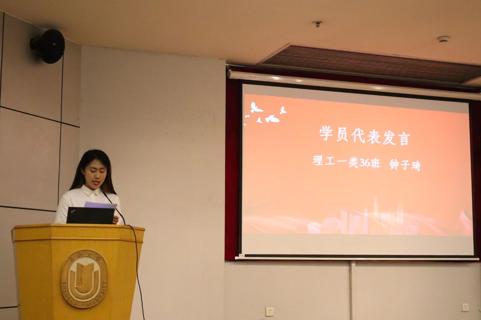 来自理工一类36班的钟子琦同学作为优秀学员代表发言,她首先表达了对学院各位领导、老师辛勤付出的感谢之情。她在发言中讲到,本次培训中的所学所思使自己更加坚定了对党的信仰,进一步明确了党员的责任和使命,对党的理论和路线有了更加深入的了解。她希望大家能把培训学习的成果转化为今后学习生活的动力和能力,在今后各项工作中进一步发挥榜样引领作用。