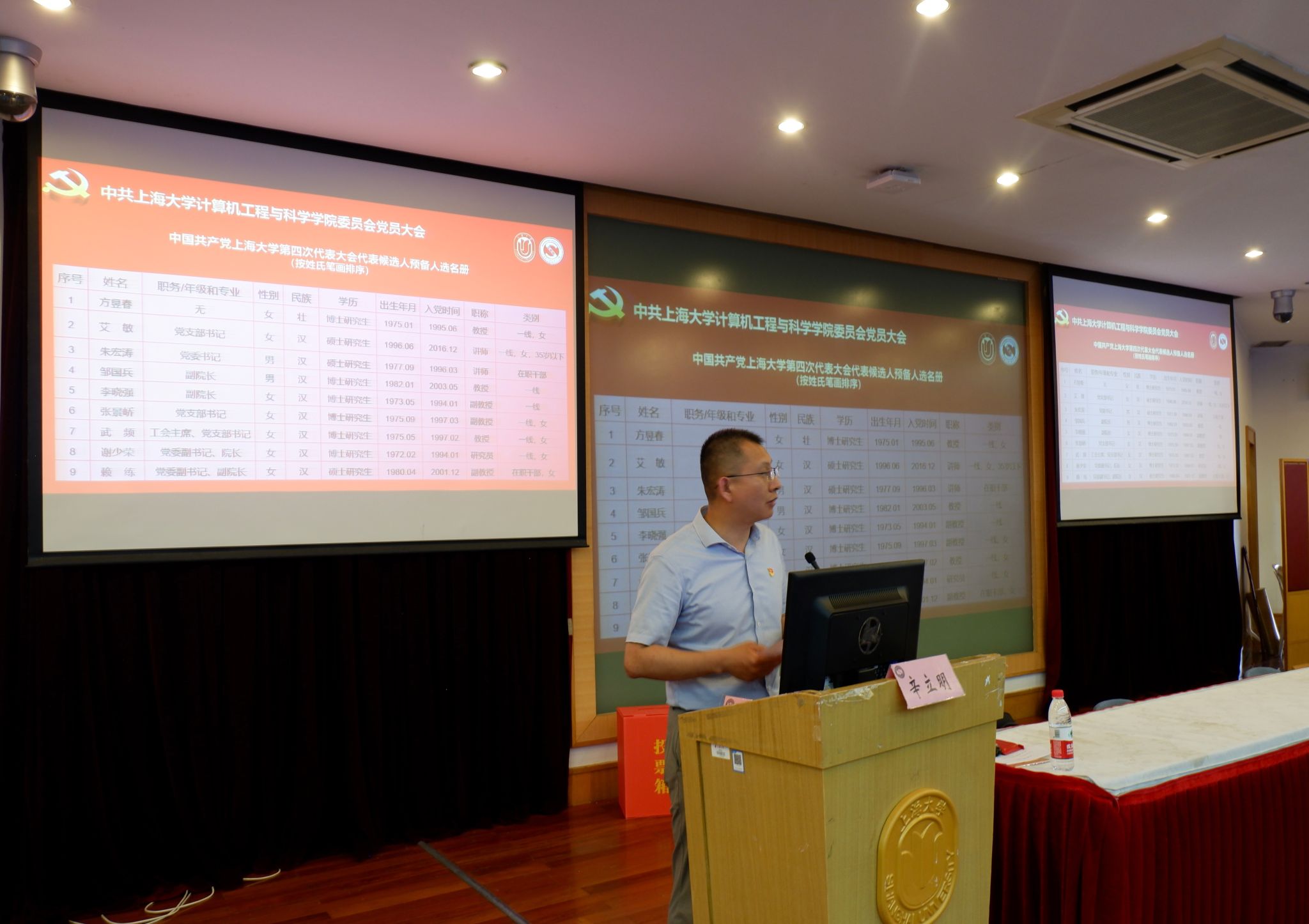 大会在庄严的国歌声中拉开序幕。首先,朱宏涛书记宣读了学校党委的有关批复,并通报了计算机工程与科学学院党委出席学校第四次党代会代表候选人推荐的总体情况,审议通过了选举办法和大会总监票人、监票人名单,宣布了计票人名单。