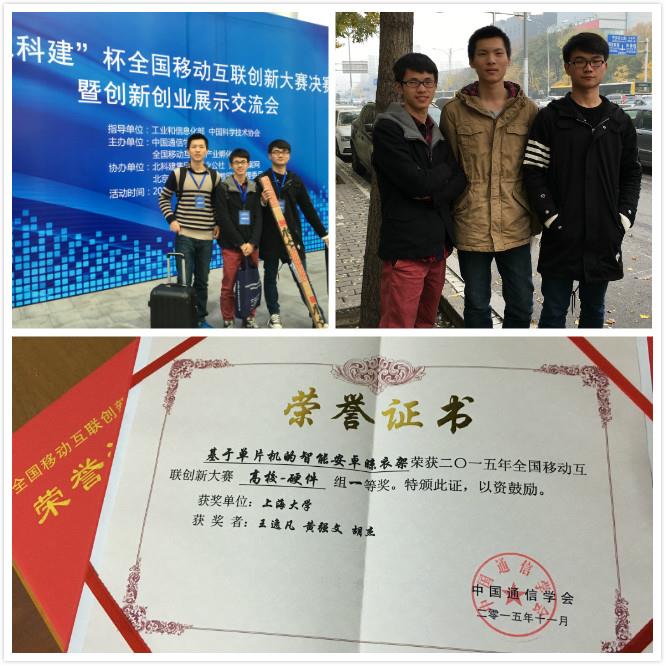 2015年11月14日至16日,由国家工业和信息化部、中国科学技术协会指导,中国通信学会、全国移动互联网产业孵化中心联合主办的“北科建”杯首届全国移动互联创新大赛决赛暨创新创业展示交流会在中关村国际创客中心举行。来自清华、北航、北邮等的高校教师,腾讯、百度、京东、海尔、汉能、IBM、ARM、Atmel公司的专家,经纬中国、软银赛富、麟玺创投、中科乐创、中信建投等投资或金融机构总裁、合伙人或投资总监等共同组成的强大的36人评委团队,从技术、市场及投资前景上对作品进行了评审。