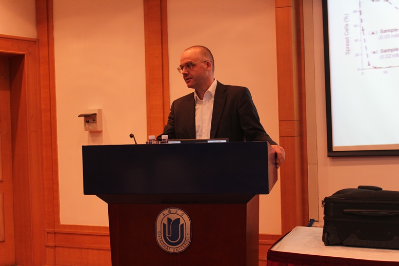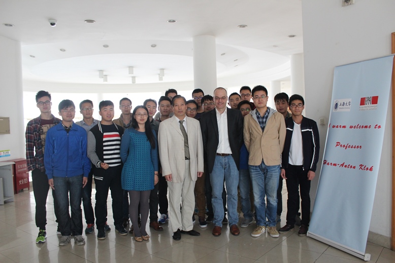 Klok教授在多肽/蛋白材料、树枝状和超支化聚合物、高分子表面改性等多个方面均有很高的造诣。Klok教授将在此次讲座中就“Surface engineering controlled radical polymerization”主题做学术报告,与上大的师生进行交流,带来材料表面可控自由基聚合方面最新的研究结果。尽管当天天气寒冷,但依旧挡不住同学们求知的渴望。特别是研一的新生更是积极参与,很早的到达了现场。在报告现场,教授在上面声情并茂的演讲,同学们在下面听得津津有味。报告结束后,Klok教授与到场的学生和老师进行了热烈的讨论,并表示作为环化学院的客座教授,会定期来校访问,进行相关的学术交流。