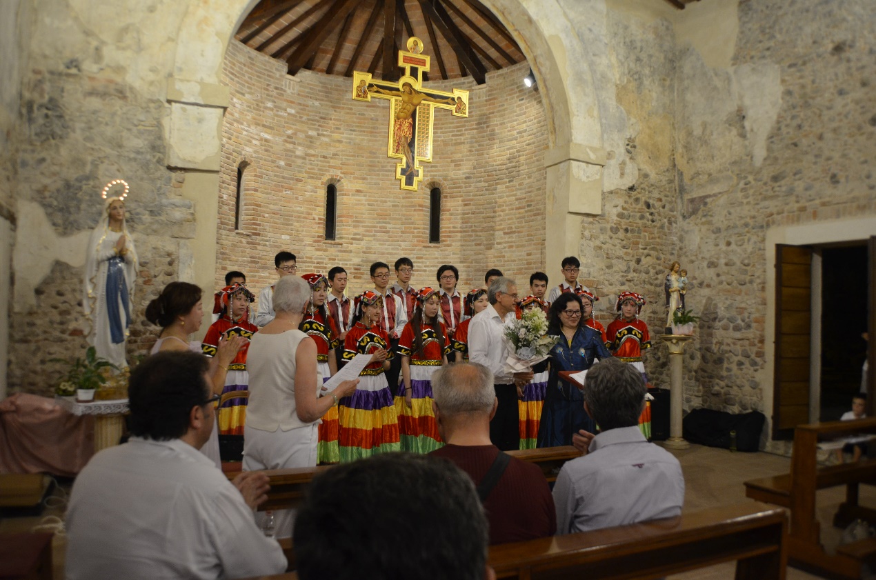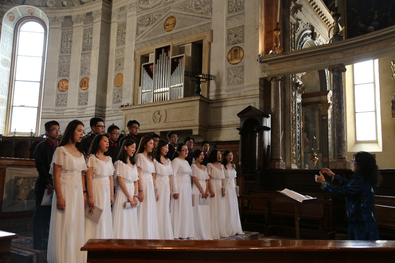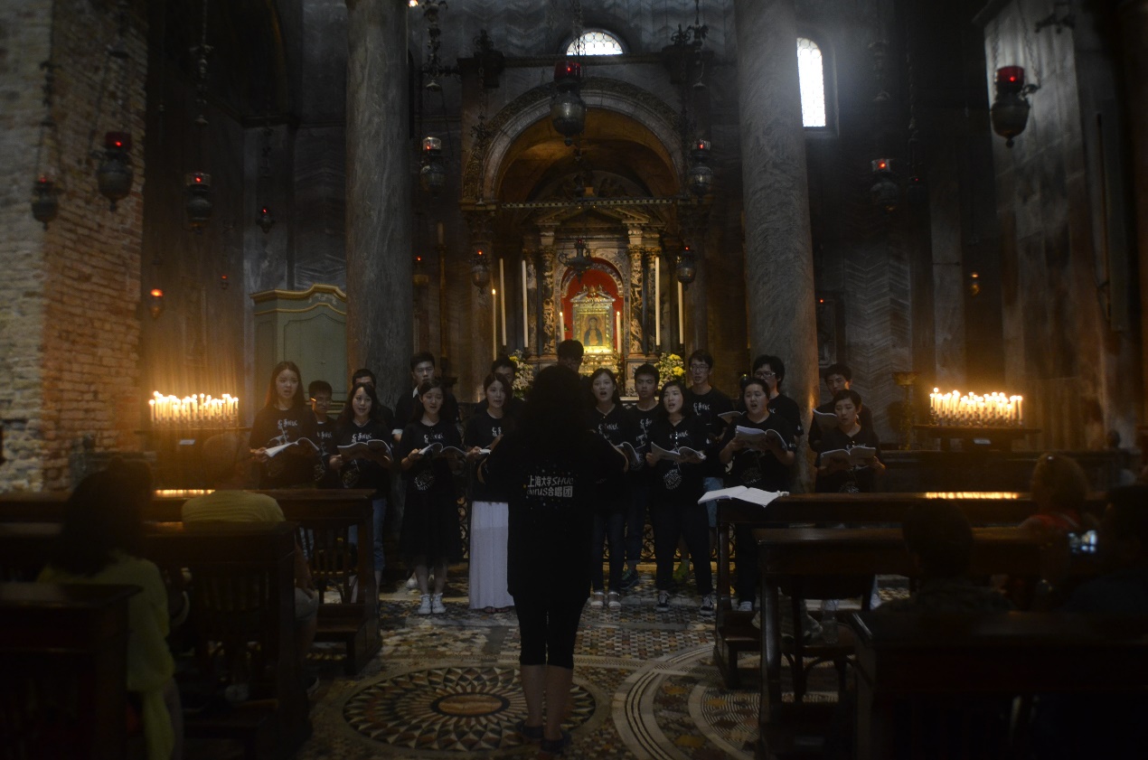 合唱团一行于当地时间16日下午到达意大利维罗纳自由镇,并参与了合唱节的欢迎酒会。在酒会上,我团为其他前来参加合唱节的合唱团演唱了中国歌曲《夜来香》,浓浓的中国风情让组委会以及来自世界各国的合唱团团员们眼前一亮。