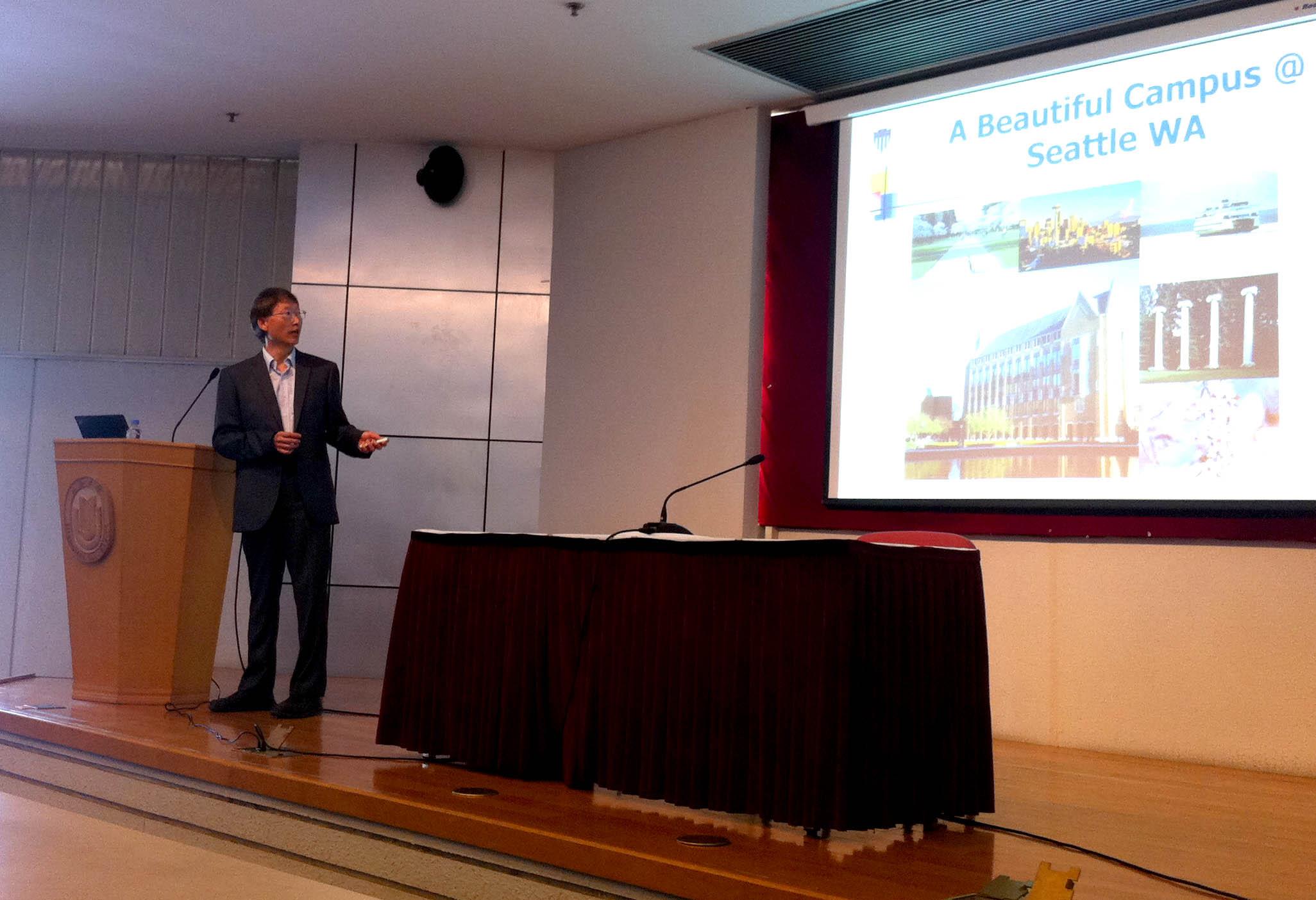 7月8日上午,在行政楼报告厅,来自美国华盛顿大学的黄正能教授面对全校的研究生,做了一场题为“怎样成为一个高效优质的研究生”的讲座。