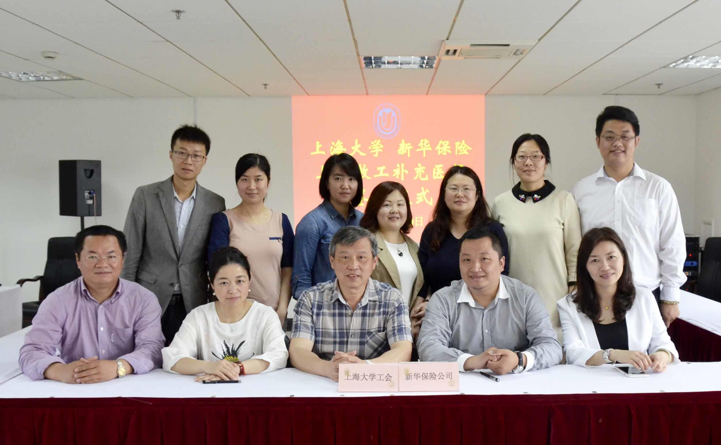 5月19日上午,校工会与新华保险公司在校本部伟长楼202A举行了上大教职工补充医疗保险签约仪式,这意味着我校5000多名教职工从2015年4月1日起,将在市总工会职工医疗互助保障计划、上海工会会员服务卡的基础上,又增加了一份包括门急诊、住院及大病医疗的保险。