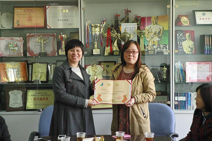 会议在轻松愉快的气氛中开场。方烈敏老师首先向参会的各位妇女代表致以迟到的节日祝福,然后谈起“迟到”的原因。他说,由于妇女节当天我校尚处于寒假期间,开学后各方面工作又都十分繁忙,所以这次会议不得不一再推迟,今天各位老师能够在百忙之中齐聚于此,是一次难得的交流、交心的机会。接着,孙琦琰老师为荣获影视学院“三八红旗先进个人”称号的辅导员彭红老师和广告学系汪洋老师颁发了荣誉证书。王毅敏老师对两位先进个人在过去一年中取得的工作成果表示肯定,并请两位受表彰者谈谈自己在学院工作中平凡却值得回味的经历或感受。