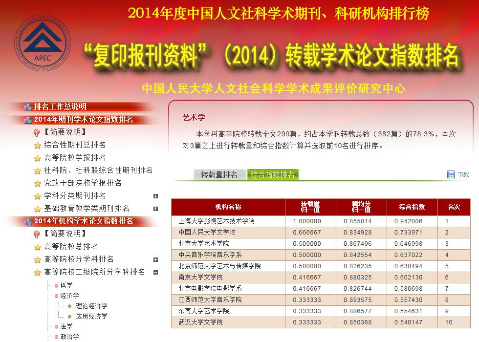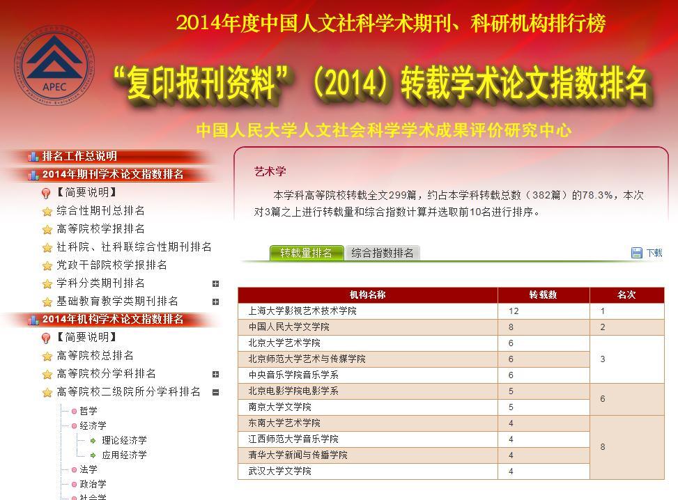 自2001年3月首次发布以来,“复印报刊资料”转载排名相继在《光明日报》、《中国新闻出版报》、《中国社会科学报》等各大媒体及光明网、中国网、中国广播网、中国高校人文社科信息网、中国社会科学网、中国人民大学网等网络媒体持续发布14年,从独特的视角反映了我国人文社科学术期刊、教学科研机构的学术研究水平和状况,并受到了学术期刊出版单位、教学科研机构、科研管理部门等社会各界的广泛关注和高度重视。“复印报刊资料”的转载量、转载率、综合指数等已逐渐被学术界和期刊界视为人文社科学术评价的参考依据之一,强调“质量为本”的论文评价和精选实践,为我国人文社科成果评价提供了有价值的新视角。