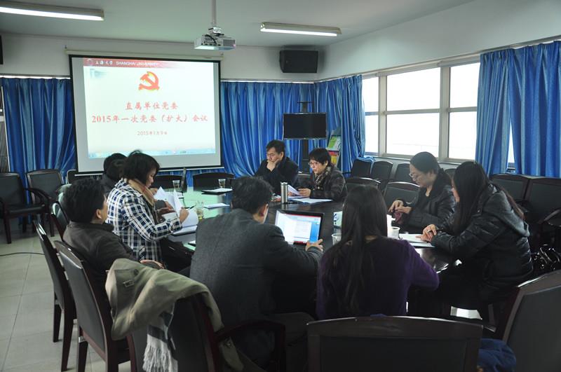 1月9日上午,直属单位党委在校本部D楼直属单位教工之家召开2015年第一次党委(扩大)会议,讨论近期工作,交流全系统管理工作完成情况。会议由直属单位党委书记陆翠兰主持,直属单位党委委员及所属单位负责同志参加了会议。