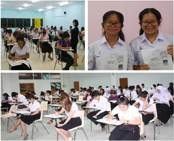 董里府华裔众多,且绝大多数人从事旅游商贸行业,普吉孔院利用自身优势,积极服务于当地发展。本次董里分部的汉语水平考试有480名考生参加,涵盖HSK一级至六级。监考教师精心组织、充分准备,为考生提供了人性化的服务保障。在得知HSK一级考生周杰(NattakornBoonchuai)找不到自己的准考证后,考务老师立刻为周杰找到备用准考证备用。监考教师尽力解决考生考试中的问题,全力营造良好的考试氛围,受到考生及其家长的一致好评。