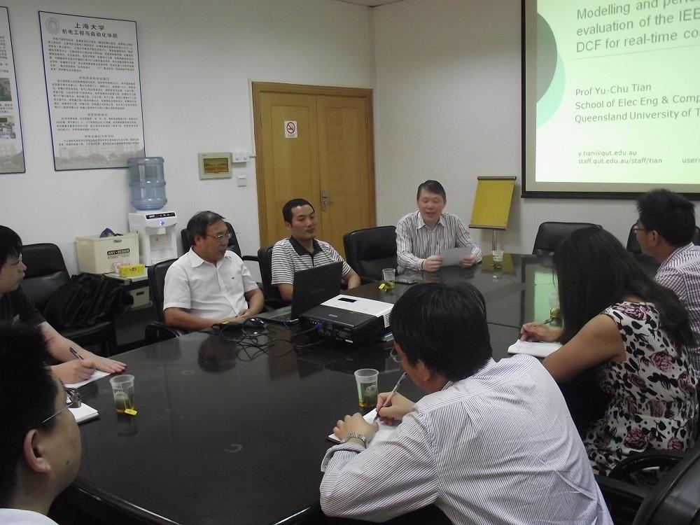 2014年6月12日下午,澳大利亚昆士兰科技大学电机工程及计算机科学学院网络与通信系主任田玉楚教授访问我校。田玉楚教授是澳大利亚研究理事会(ARC)认定的国际专家,于1993年获浙江大学博士学位,2009年获悉尼大学博士学位,曾在中国大陆、香港、美国和澳大利亚的多所大学工作,现为澳大利亚昆士兰科技大学终身教授。迄今已出版专著一部,发表科研论文160余篇,h因子22。拥有国际专利。研究兴趣包括实时计算、计算机网络与无线通信、大数据处理、分布式计算及云计算、系统工程、以及控制理论与工程。他创建了QUT的网络与通信系,在QUT领导建立了澳大利亚第一个大数据高性能计算及网络实验室。承担主持了多项澳大利亚ARC国家基金及国家研究中心重大科研项目。现任Springer 的Handbook of Real-Time Computing丛书主编、Information Sciences以及Asia-Pacific Journal of Chem Eng杂志副主编。