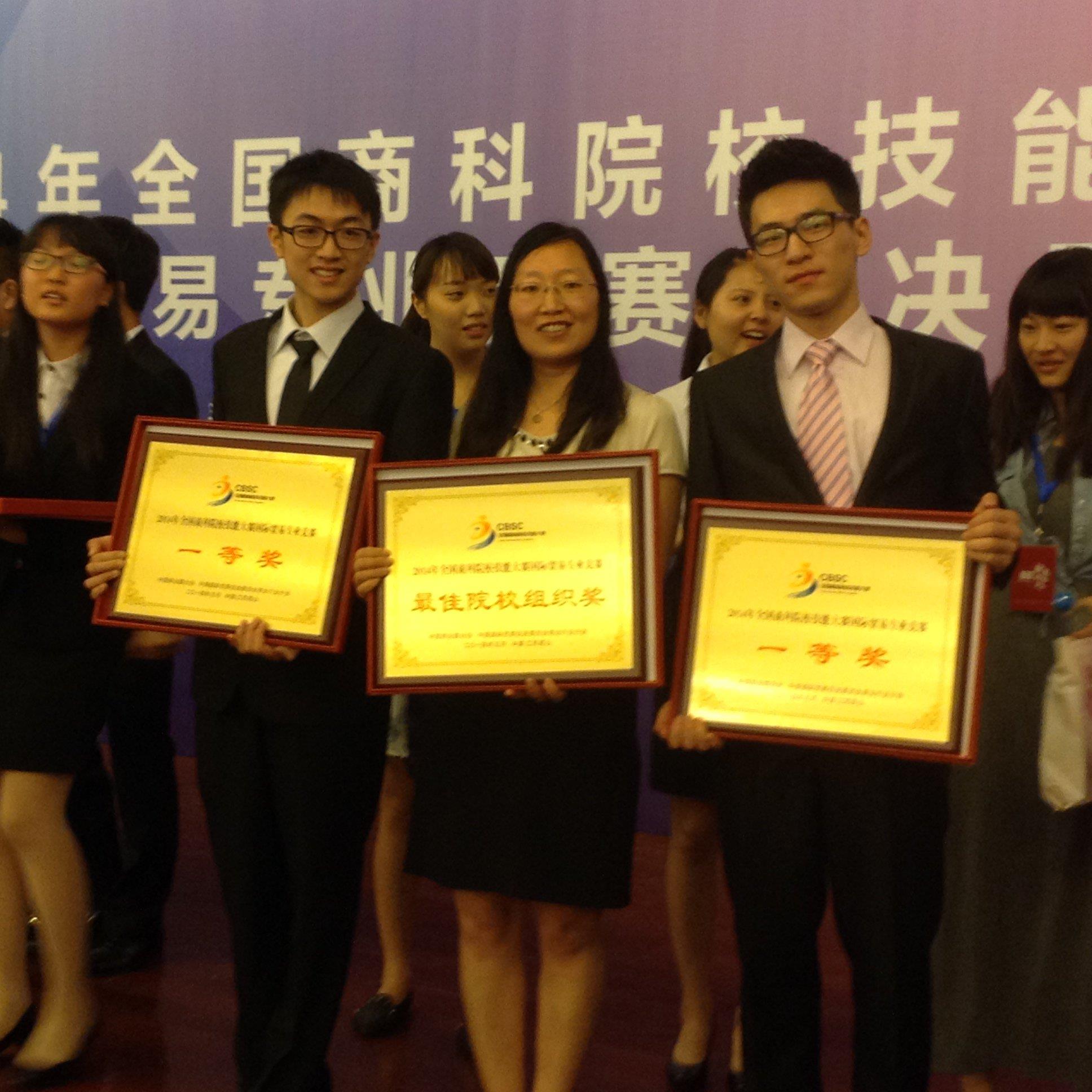5月26日至30日,由中国商业联合会和中国对外贸易促进委员会商业行业分会共同主办的2014年全国商科院校技能大赛国际贸易专业竞赛总决赛在昆山举行。我院共派出两支队伍,一支是主要由12级国际贸易专业学生组成的上海映象苏绣队,另一支是主要由11级工商管理专业学生组成的易格自然生态瓶队,两支队伍在比赛的各个环节表现突出,最后分别获得总决赛一等奖。辅导教师贾利军获得优秀辅导教师奖。