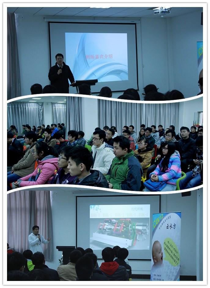 理学院党委副书记刘亮老师首先作了开场发言,肯定了分享者的成果,并鼓励场下同学应多参与创新项目,学以致用,希望他们在今后做出更好的成绩。接下来分享会正式开始,参加学生课外科技作品交流分享会的嘉宾们带着自己的作品前来向大家展示,其中包括基于可变直径轮的代步器、鼠标笔、光感触控仪、幻象之星、云水方、心动灵动、Transmission Snake以及舌尖上的校园,这些作品均包含了讲述人智慧与汗水的结晶。在每位讲述人分享其心得体会与创作感受后,场下都会想起雷鸣般的掌声,同时许多在场同学都提出了自己的问题和观点,分享着以他们的切身经历一一做出了答复;从他们赋予激情的掌声中,我们可以感受到他们奋勇向前、开拓创新的信念,他们一定会在未来学以致用,做出更好的作品。
