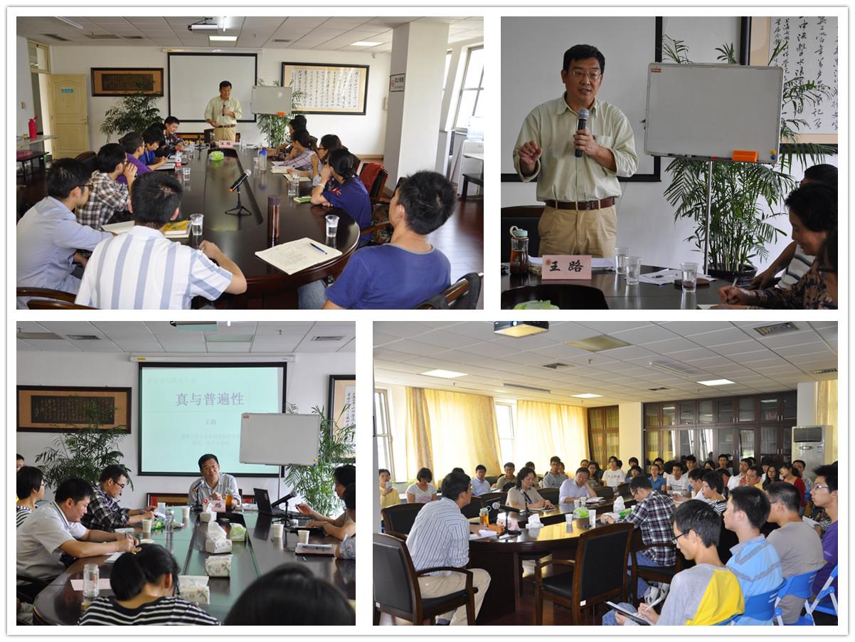 讲座伊始,王路教授首先旁征博引地介绍了关于“真”这一问题的重要性,深入浅出地分享他最新的思考与成果。他指出“真理”是具体的,而“真”这个词比“真理”更具有普遍性。然后,王老师以一种幽默浅显易懂的语言,灵活运用日常生活中的例子,让大家轻松地走进了“真”,并提出了“真”与“真之条件”的区别,他指出“真”与句子是对应的,是具体的、可证实的,而句子的“真之条件”可达普遍性。之后他引用亚里士多德的《形而上学》的部分篇幅,就“真”的问题提出了几点看法。随着讲座的深入,王教授以一种渐入的方式介绍了“真与普遍性”,他通过日常生活中常见的语句与句式着手,让在场的听众进入了哲学思考的殿堂。最后,王教授总结了此次讲座的主要内容,再次强调了“真”问题的重要性。