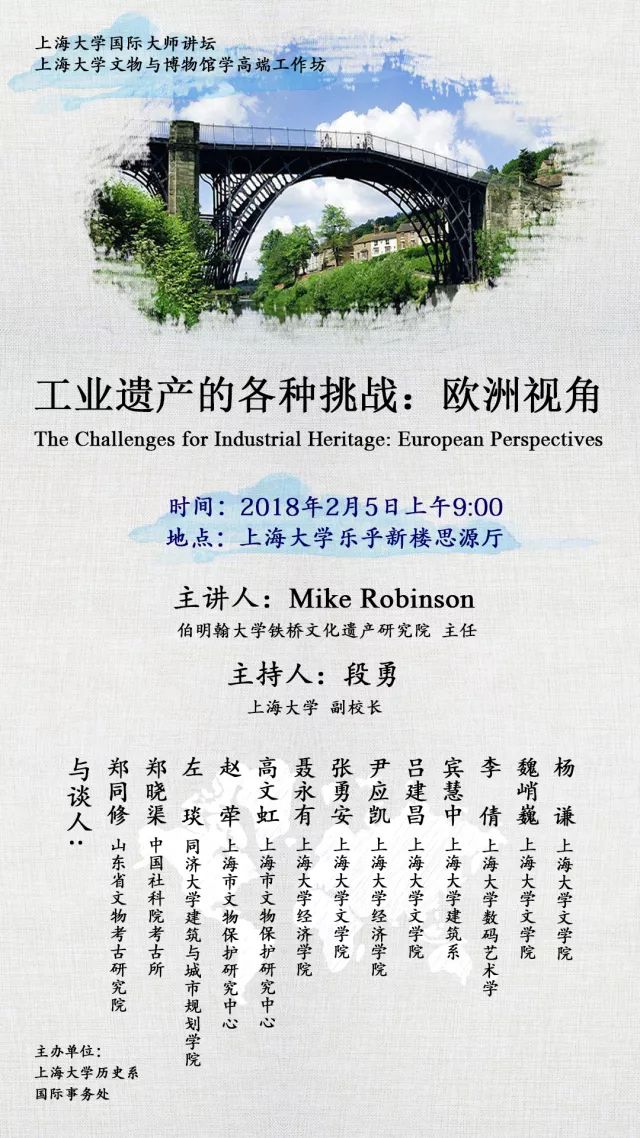 麦克•罗宾逊教授(Prof. Mike Robinson),目前担任伯明翰大学铁桥国际文化遗产研究中心(Ironbridge International Institute of Cultural Heritage)主任一职。